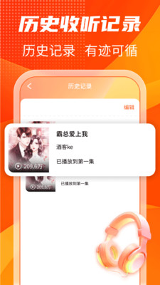 3、自动同步历史收听记录,中途退出无需手动标记,再次打开直接跳转上次进度,无缝接续追更,精彩剧情不中断。
