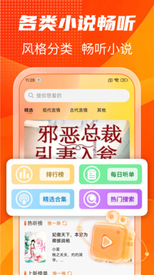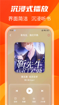 1、手机一键开启听书模式,海量正版小说随心畅听,高清音质搭配沉浸式播放,解放双眼尽享阅读乐趣。