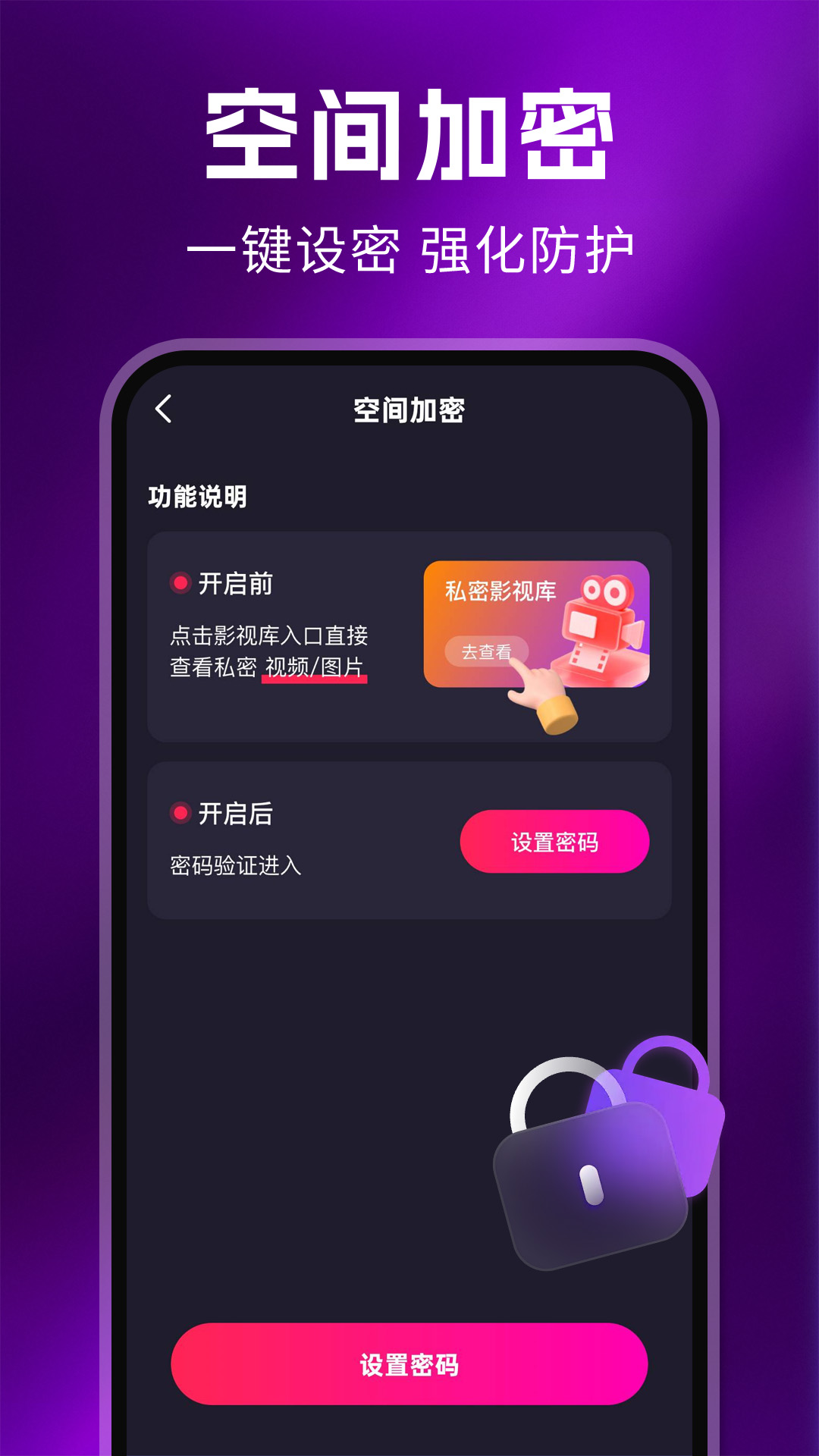 4、加密空间,隐私保护,设置专属密码,打造个人加密空间,确保您的私密内容不被窥探,享受真正的私密观影。