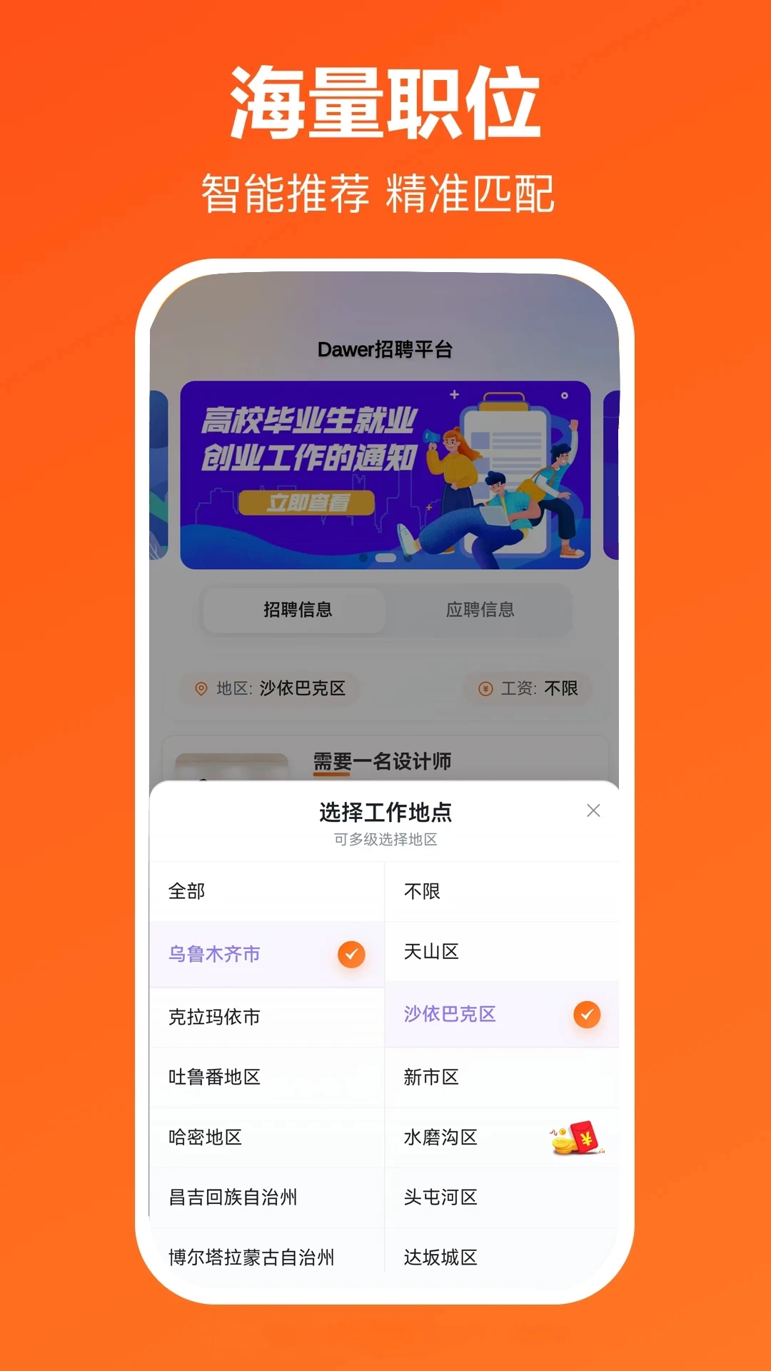 Dawer是一款专业的求职招聘软件,专为求职者与企业进行打造,帮助企业快速的招贤纳士,求职者用户在线可以根据自己的条件需求进行精准匹配到适合的岗位,平台内所有的企业都是经过资质认证的,求职者用户在线可以免费创建个人的简历,通过大数据进行匹配到心仪的岗位,与企业hr进行面谈邀约!