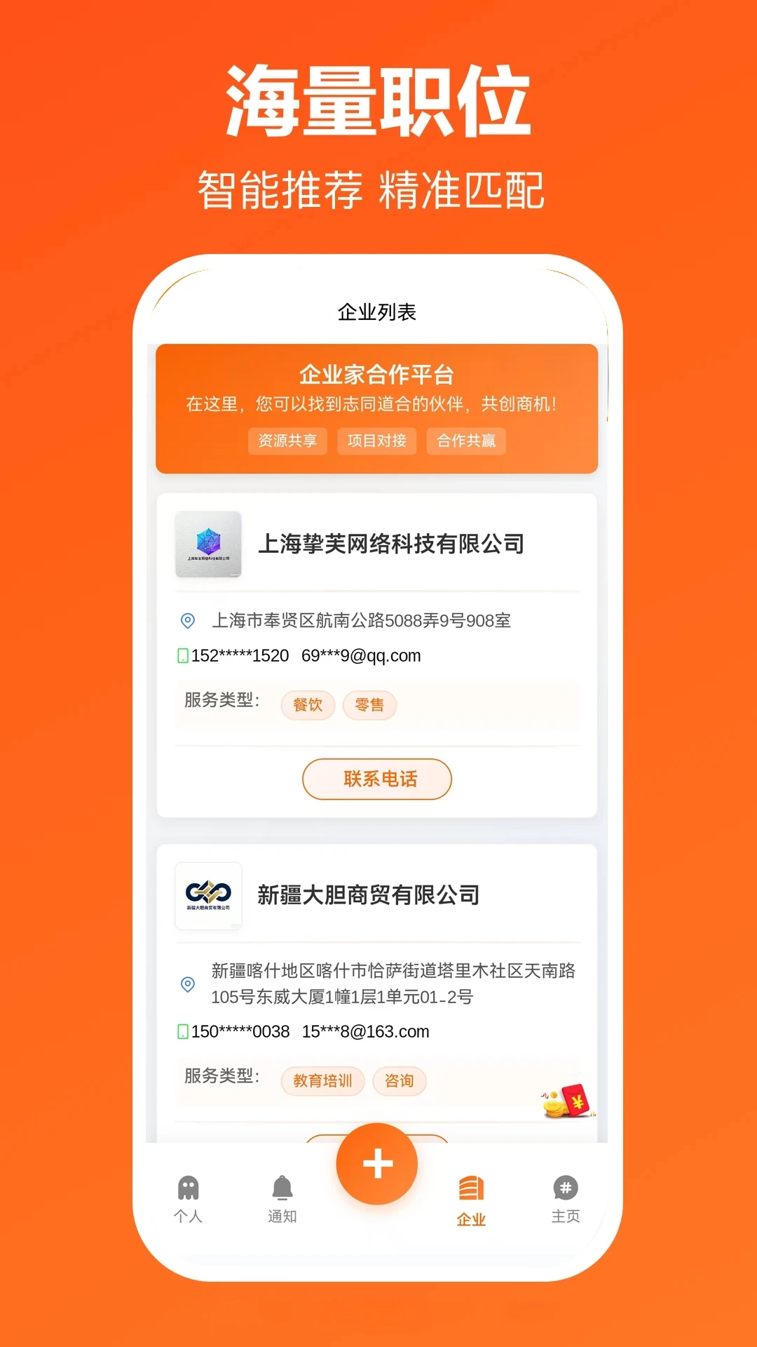 2、更新了最新的企业列表,用户点击后可以获取详情进行联系。