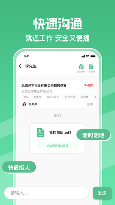 3、求职者与招聘方直接快速沟通,无需中介中转,薪资、工作细节实时聊,高效敲定合作不耗时。