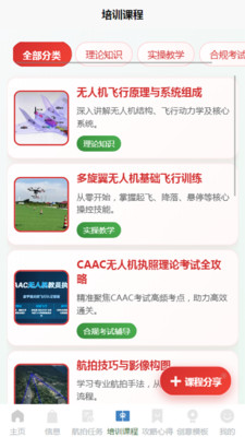空域视界app是一款包含了很多与无人机相关的服务与信息的平台,让无人机爱好者和创作者们通过平台获得自己需要的资源与服务。平台上包含了很多无人机商品以及配件信息,还有航拍任务列表,有丰富的任务订单满足专业飞手的接单需求。包含了丰富的无人机使用教程,从理论知识到实操教学、合规考试等相关的课程全面覆盖,满足大家的学习需要。
