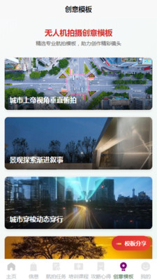 3、丰富创意模板一键套用,风景剪辑、活动记录、旅行vlog等场景全覆盖,自动匹配转场音乐,快速生成质感航拍作品。
