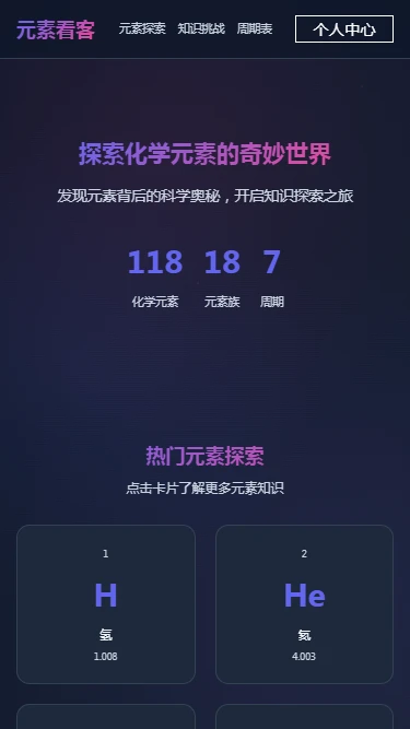 2、打开app,首页即呈现动态周期表与热门元素探索专题,精彩内容一触即达。