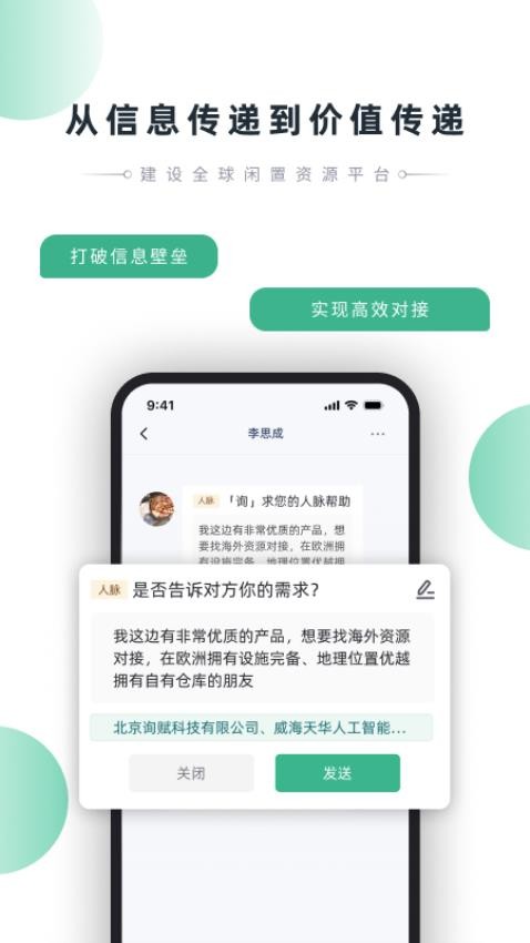 1、它能有效打破传统人脉拓展的信息壁垒,让你在一个平台内就能实现高效的资源对接与合作。