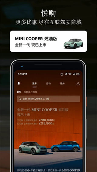 ·车辆:帮助MINI新车主一键激活互联驾驶服务。远程访问并管理您的爱车,轻松远程控制车辆门锁,便捷查看剩余油量、续航里程等重要信息,驾程状态尽在掌握。并可在线