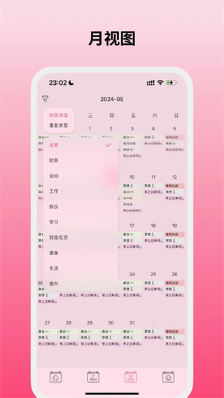 3、备有多种不同的标签,包括运动、工作、娱乐、学习、生活等,让你的事项归类既清晰又有趣。