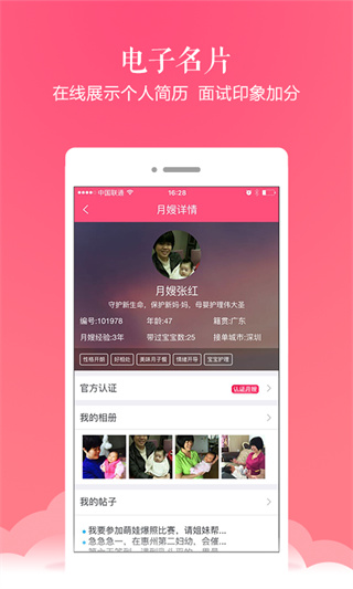 2、软件体积小巧,界面设计简洁,操作也非常便捷,适合月嫂群体随时随地使用;