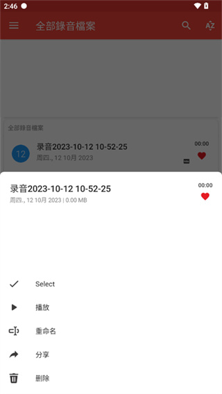 4、进入软件首页就可看见所有保存的录音,通过长按就可播放文件;