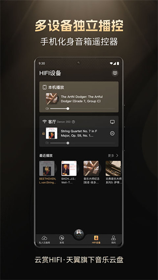 无损音质无法通过音箱设备播放?你只需通过DLNA连接音箱设备,即可享受极速稳定的歌曲播放,还有多设备播放供你选择