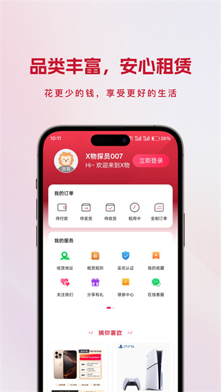【信用免押·先用后买】X物是专注3c电子设备、二奢等多品类,全租赁的一站式信用服务平台,通过区块链技术与信用大数据构建智能风控体系,为用户开启"以租代购"的轻消费新体验。
