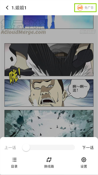 4、在阅读页面中可以通过底部的功能栏切换上一话或下一话也可以点开目录选择章节,此外软件还提供了不同的阅读模式如上下滚动或是普通的翻页模式额昂用户自行根据习惯调整。