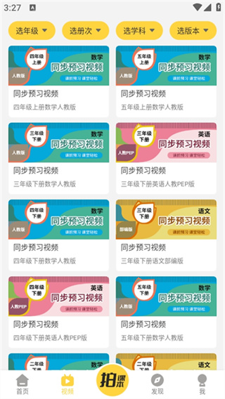 3、进入年级页面后选择对应的学科再根据教材版本找到自己的课本,如果没有找到对应版本也可以使用底部的“拍书”功能通过拍摄课本封面进入识别添加。