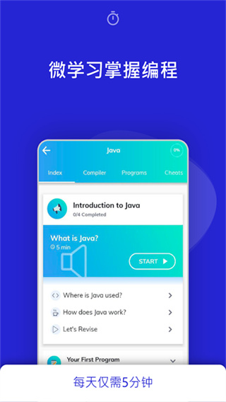 PROGRMMINGHUB是一款专门用来学习编辑知识的教育类软件,在打开app后可以选择不同课程进行学习列如多种常见语言也能学习网页开发或人工智能等相关技术,课程内容一般以短章节形式呈现和通过图文讲解帮助其能够更好理解编程概念同时还有在线编辑器和运行环境可以章节在手机上编写和运行程序。