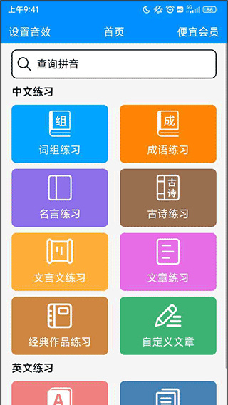 1、下载后打开就能看见不同的练习模式能够根据自己的需求选择一种模式,像是基础的练习或是拼音输入练习等,点击后就能进入对应的练习页面。