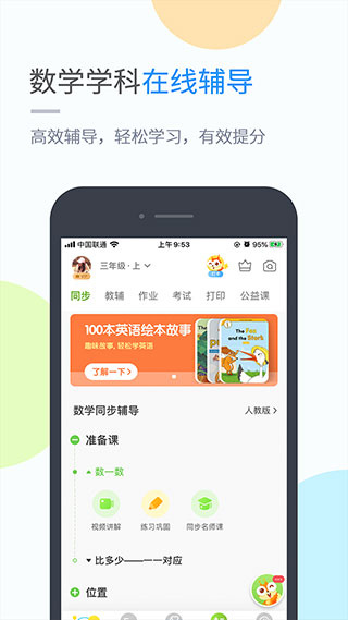 3、支持课文点读、跟读、朗读,帮助学生纠正发音提升语感,同步进行在线辅导,轻松巩固课堂知识;