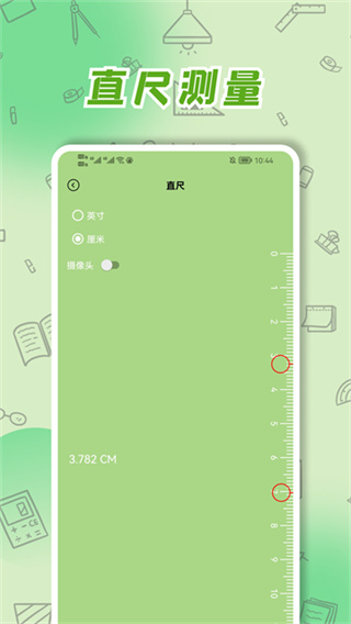 厘米尺是一款用来做手机测量的小工具软件,可以直接把手机当作直尺来使用也可以搭配相机做一个简单的测量比如平时想量一下小物件的长度、看角度正不正确或者是临时测个大概的尺寸等都可以直接在手机上完成,除了直尺还有水平仪和角度测量等这类常用小工具。