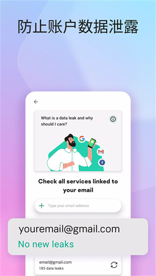 1、除了安全检查还可以将密码管理和资料泄露等提醒放在一起,不想将手机内存挤满就可以使用这一款更加集中的安全应用;
