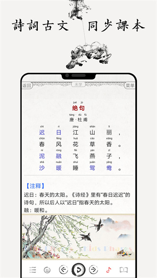 2、很多文章都会配有朗读、拼音和注解等,让其在查看时不会有卡住、碰到读不准或是看不懂的地方;