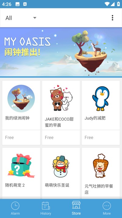 内置商店提供多款免费皮肤,部分皮肤搭配专属小游戏,自由定制闹钟外观。