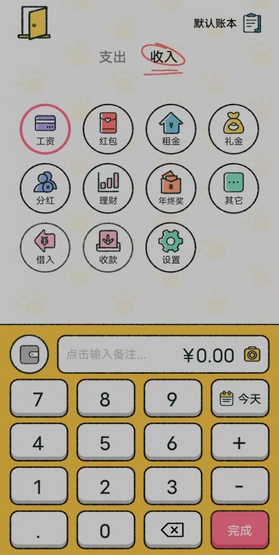 4、在记账页面,点击对应分类图标,输入对应金额后,完成该账本的制作。