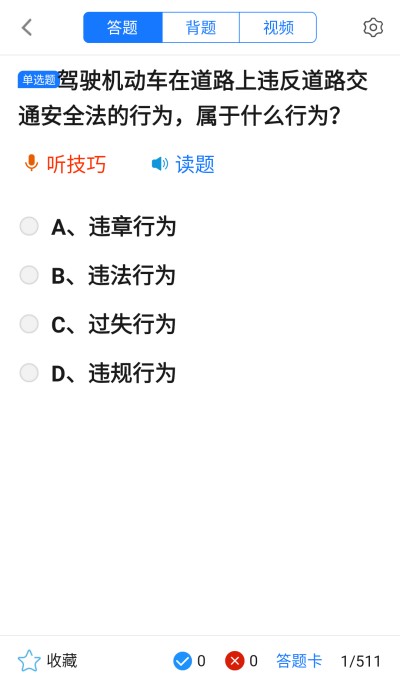 2、练习页面找到下方的做题选择,进入题目作答环节,按顺序完成科目一的题目练习。