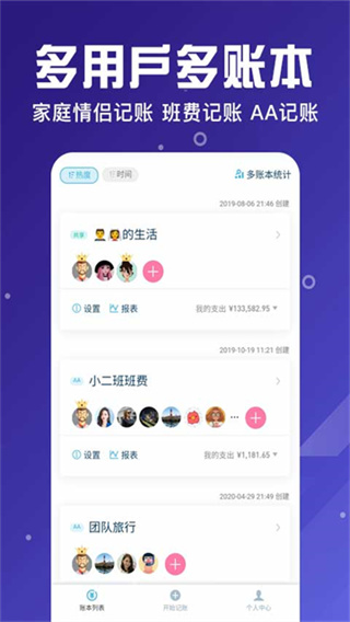 2、有个人记账和多人消费等记账方式,可以同时区分不同的记账本和细致的管理钱财的出入记录;