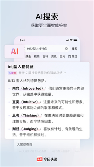 今日头条,一款越用越懂你的资讯客户端基于机器学习的个性化资讯推荐引擎,5秒算出你的兴趣,每日1000多位工程师精心优化算法,只为每一次推荐都更加精准,让阅读更加有用高效。