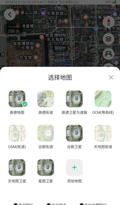 4、提供谷歌街景、卫星、地形、OCM、OSM、高德6种专业地图,支持高清离线下载。