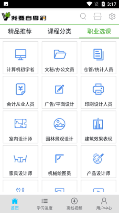 1、首页可以选择课程类型进行挑选学习。