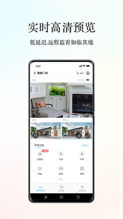小鹰看看是一款智能监控设备辅助软件,需要配合智能摄像机产品使用,在平台上绑定监控设备后,即可使用报警推送、远程实时视频等功能,无论旅游、工作还是逛街,都能随时查看家里监控画面,保障家庭与财产安全,搭载云储存功能,有效避免视频丢失、内存不足等问题,为用户提供稳定可靠的智能安防体验。