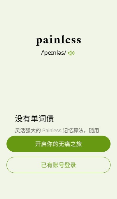无痛单词是一款轻量化英语单词学习软件,融合短视频交互逻辑,依靠页面停留时长自动识别单词熟悉程度,打造刷视频式背词体验。专属Painless记忆算法结合单词难度学习习惯与操作行为,动态调整复习节奏与词汇推送难度。学习界面优先展示英文释义,搭配例句辅助理解,助力用户养成原生英语思维。全程学习节奏自由可控,不会堆积遗留学习任务。