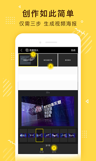 4.创作如此简单,三步就搞定。整个创作流程被极致简化成了三个核心步骤:选择模板、导入素材、生成作品。就算你是个完全不懂设计和剪辑的小白,也能在几分钟内快速完成一个看起来很厉害的视频海报。