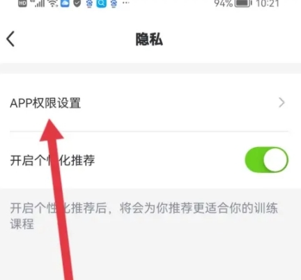 进入隐私设置页面,接着点击【APP权限设置】这一项。