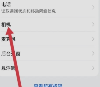 在热汗舞蹈的权限列表里,找到【相机】这一项,点击它进行设置。