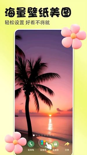 如果你追求视觉上的统一感,它提供的套图功能就非常实用了。你可以找到风格完全一致的锁屏和桌面组合壁纸,一键同时设置,让手机界面看起来更加协调。