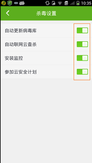 3、在这里你可以进行详细的杀毒设置,比如开启病毒库自动更新、联网云查杀以及安装监控等功能。