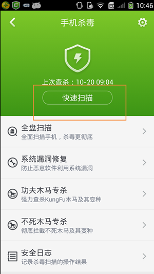 2、快速扫描主要检查的是你手机里已经安装的各种软件,这其中也包括了手机出厂时自带的系统应用。