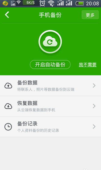 请注意,无论是备份还是恢复数据,都需要连接到网络,建议在WiFi环境下操作以节省手机流量。