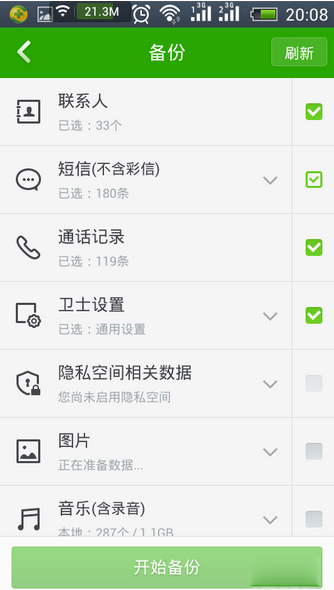 5. 接下来,你只需勾选上那些你想要备份的内容类别就可以了。