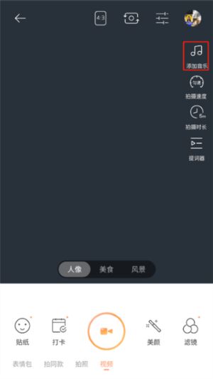 4、如果你想给视频配上音乐,可以点击右侧的“添加音乐”功能。