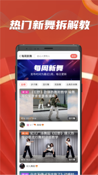每周都会有新舞上线,并且都配有详细的动作分解教学,让你能把每个细节都看得清清楚楚。