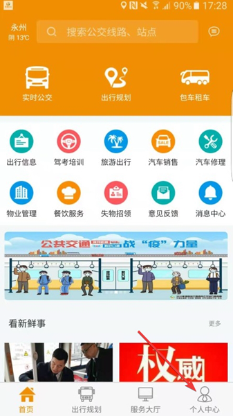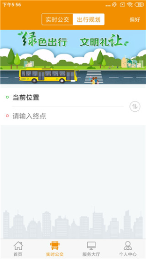 2、进入首页中,可以查看展示的实时公交、出行规划、包车租车、物业管理等服务