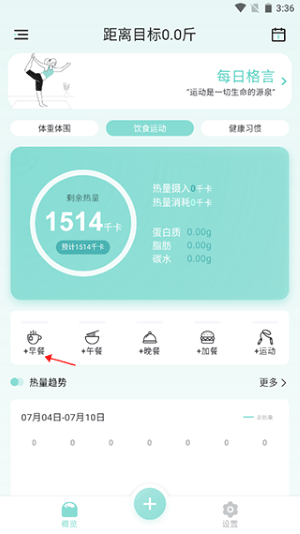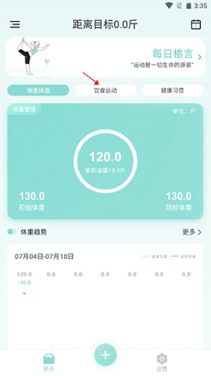 1、打开软件后进入软件概览,选择饮食运动那一栏。