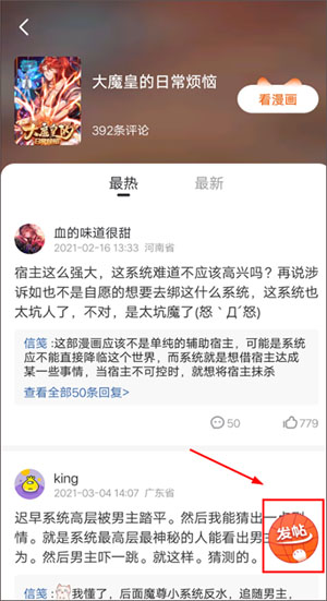 3、评论作品:您可以在漫画详情页面评论作品和作者互动,一般作者大大是会回复您的评论的。