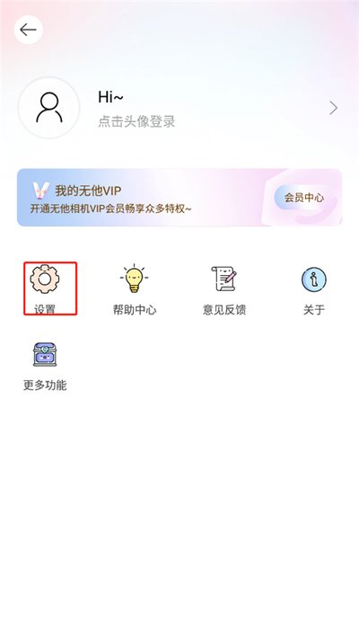 1、首先,打开无他相机,看到左上角的那个小人头像了吗?那就是通往个人中心的大门,点进去。
