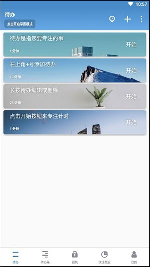 1、简单来说,想在番茄ToDo里开启学霸模式的话,用户们需要点击左上角的代办事项,点击开启学霸模式。