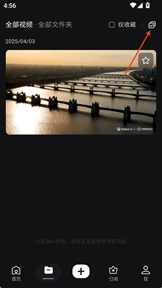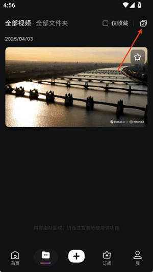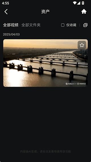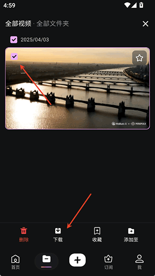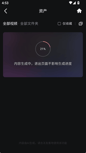 1、用户可以前往app的资产界面下查看到需要下载的已生成好的视频资源,然后点击右上角的勾选按钮