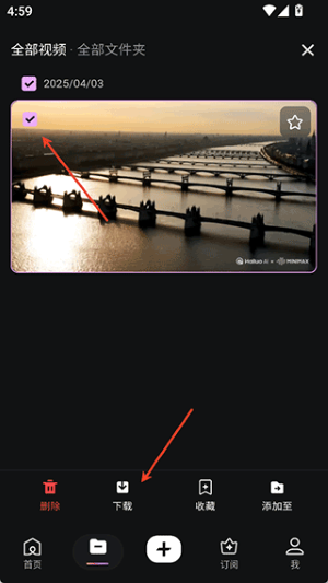 2、接着就会在底部出现下载按钮,用户在视频浏览界面左上角继续勾选下,然后再点击这个下载按钮
